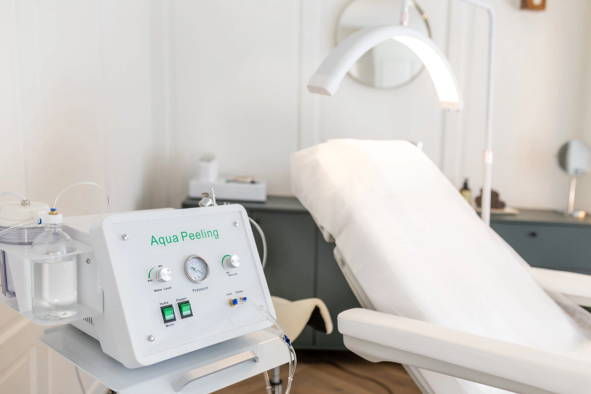 Aqua Facial, auch bekannt als Aqua Peel, ist eine hochwirksame Therapie, die gezielt auf verschiedene Hautbilder und Probleme eingeht. Der Schwerpunkt liegt auf einer gründlichen Tiefenreinigung. Das Ergebnis ist reine, frische und straffe Haut. Durch die schonende, aber intensive Reinigung wird die Haut umfassend mit Feuchtigkeit versorgt. Diese Hydration trägt zur Straffung und Verjüngung der Haut bei und hinterlässt ein hervorragendes Hautgefühl.